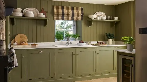 'My number one choice at the moment for painted kitchens is my Annie Sloan Chalk Paint in Olive. It's a soft, traditional khaki green that will create a sense of space in a small kitchen. It can be a neutral, dropping into the background, or it can be the shining star of a color scheme,' says artist, designer, and color expert Annie Sloan.